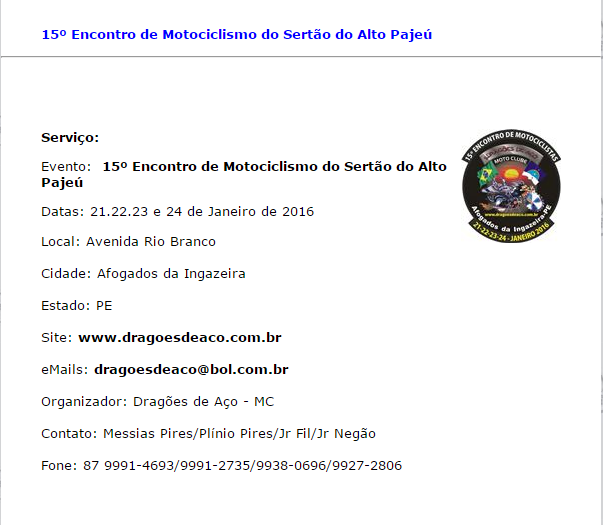 Faltou seu evento? Envie informações para tmoto.magazine@gmail.com, são cerca de 27 mil seguidores nas principais Redes Sociais.