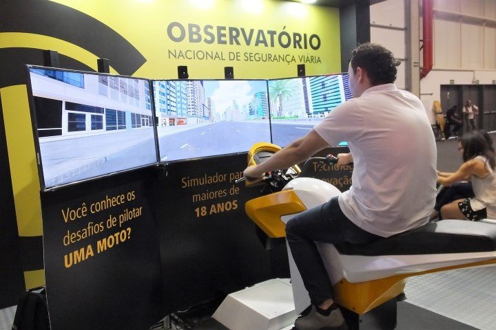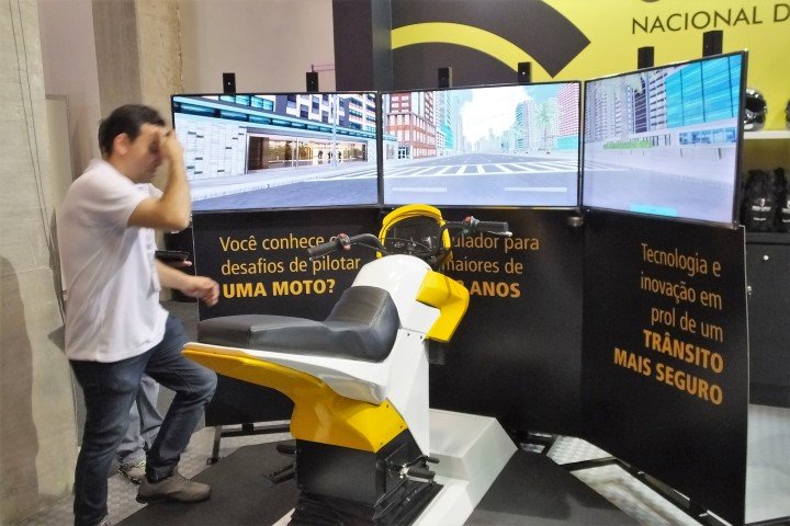 A organização levou para o Salão o protótipo de um simulador de motocicletas, que pode passar a ser obrigatório aos candidatos para obter a habilitação para motocicletas, assim como acontece nos carros.