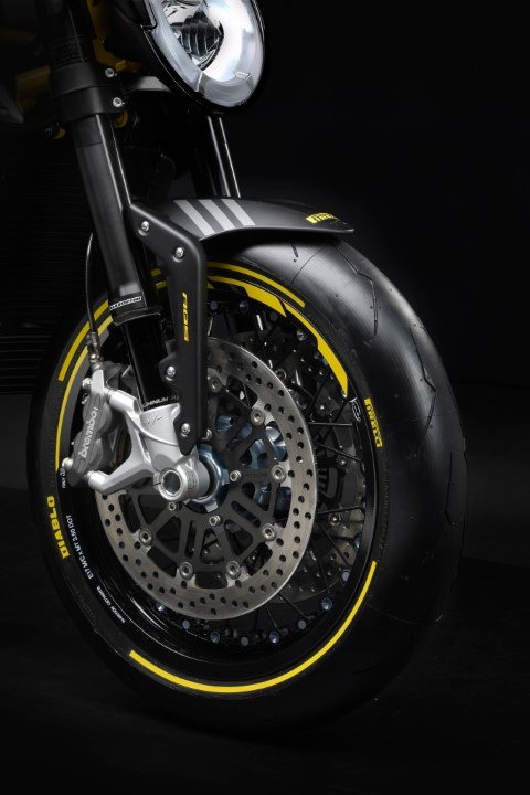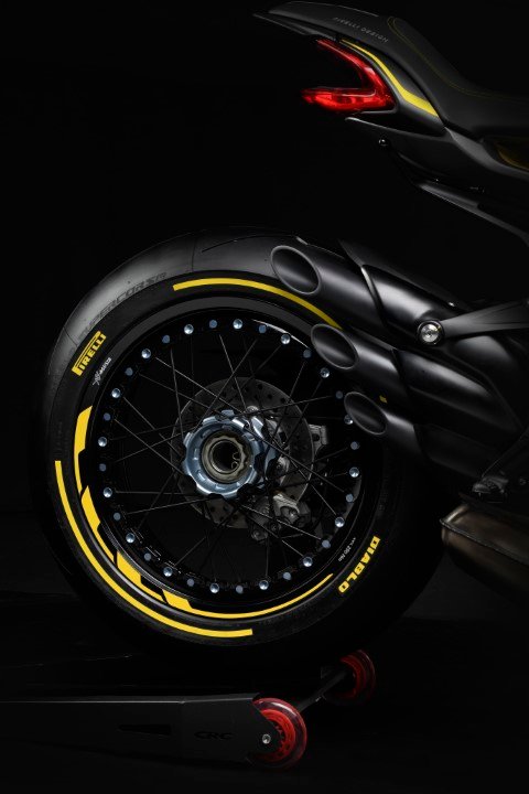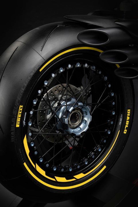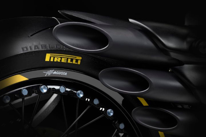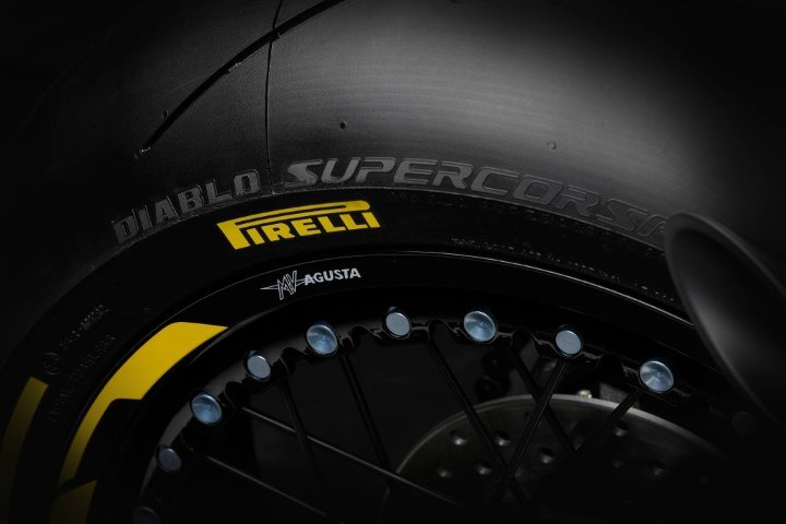 Para identificar inequivocamente a moto como resultado da colaboração entre a MV Agusta e a Pirelli, é possível adquirir, como opcionais exclusivos, pneus DIABLO ™ Supercorsa SP com laterais coloridas , respectivamente com listras amarelas ou azuis, dependendo da versão a qual eles são combinados.