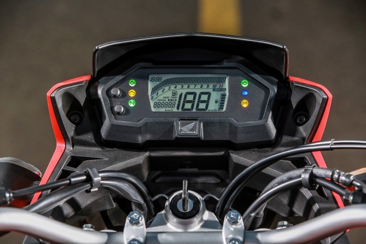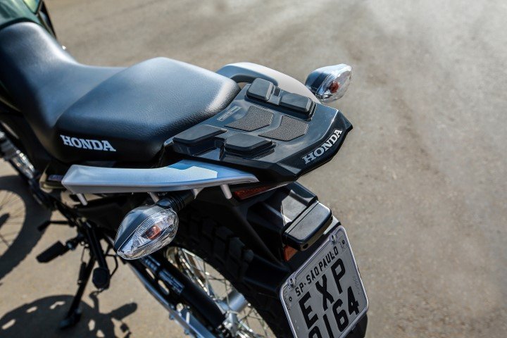 O painel de instrumentos é totalmente digital e traz informações do marcador de combustível, tacômetro, velocímetro, hodômetros total e parcial, além de indicações para todo o funcionamento do modelo. O assento largo em dois níveis oferece total conforto para piloto e garupa nos deslocamentos urbanos ou mesmo para pequenas trilhas no fora-de-estrada. O tanque de combustível tem capacidade para 13,5 litros (3,1 litros de reserva) e tampa com desenho diferenciado e estilo esportivo.