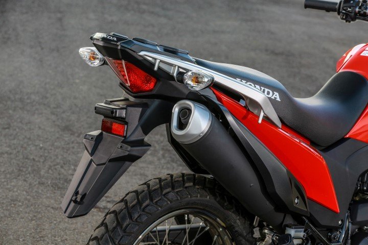 Entre seus principais atributos, destaque para o escapamento elevado, pneus para uso misto, além de para-lamas curto, com um conjunto de carenagens de linhas anguladas, modernas e imponentes.