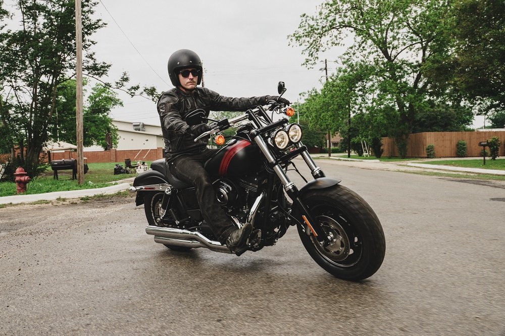 Já a Harley-Davidson Dyna® Fat Bob® combina o estilo e a atitude da linha Dark Custom™ com a imponência dos modelos Big Twin. Com design arrojado, desde o aro dos faróis dianteiros e da braçadeira tripla, até a tampa da bateria e a cobertura do amortecedor traseiro, o modelo conta com guidão robusto estilo drag bar e fiação passada internamente, realçando seu visual clean e minimalista. Frente ampla com exclusivo farol duplo, largos pneus com rodas pretas em disco de alumínio estilizado de aro 16, para-lama traseiro encurtado com lanterna de LED integrada, motor Twin Cam 96™ de 1.600cm³ com transmissão Six-Speed Cruise Drive® e sistema de freios com ABS de série com disco duplo na dianteira completam a motocicleta.