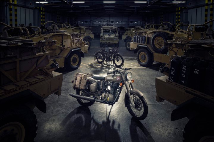 Desde motocicletas robustas construídas como plataformas de metralhadoras móveis durante a Primeira Guerra Mundial até a produção de componentes vitais para armas antiaéreas em uma fábrica subterrânea durante a Segunda Guerra Mundial, a Royal Enfield esteve em serviço direto com às forças armadas ao longo de sua existência. Esse legado continuou quando o lendário Royal Enfield Bullet entrou em serviço no Exército Indiano no início dos anos 50 e foi imediatamente implantado em alguns dos terrenos mais difíceis e testados do mundo.